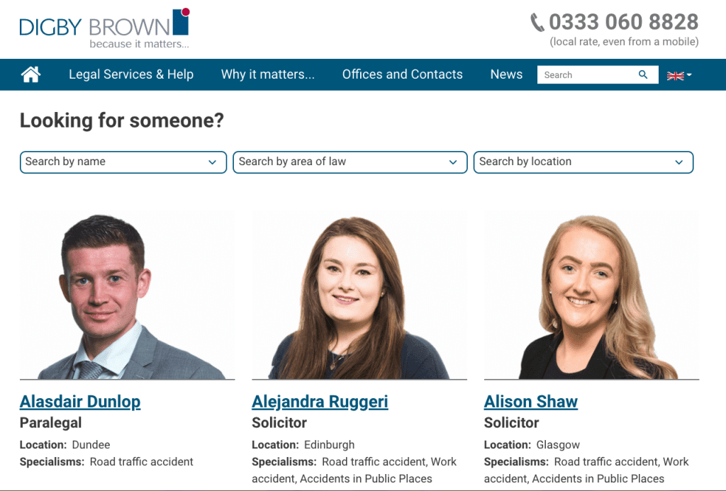 For example, Digby Brown has chosen to cut out their profile images and place them onto a clean white background for a consistent design.
