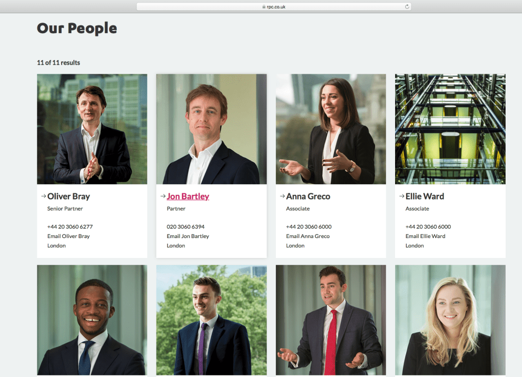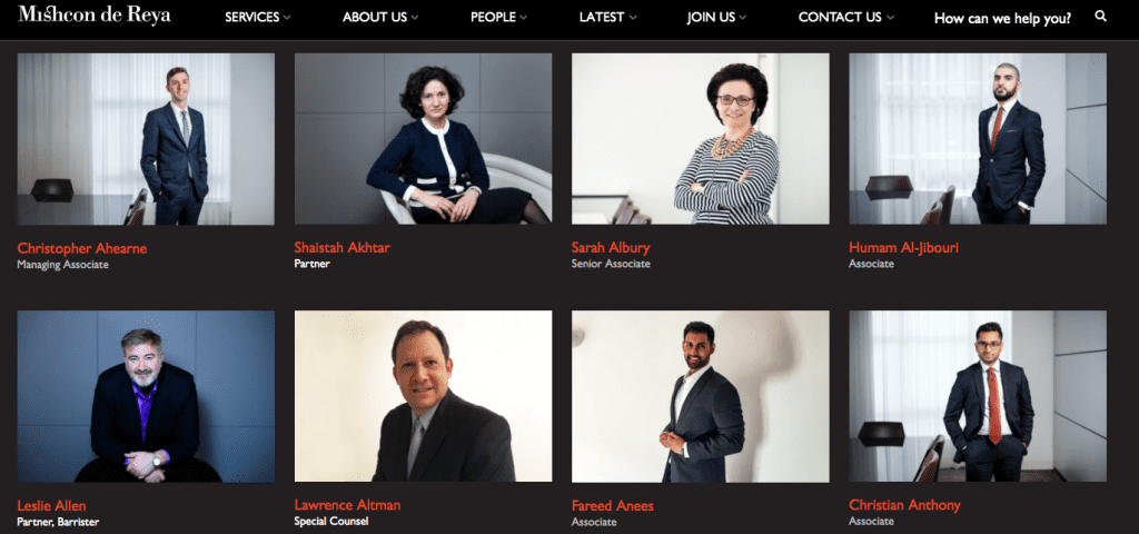 For example, Mishcon de Reya uses varied expressions throughout their profile images, with people smiling, looking happy and serious.