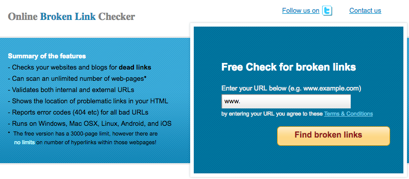 Broken Link Checker is a free tool that allows broken links to be easily found on websites. You can easily identify the page in which the broken link is displayed, and either create a redirect or change the link on your website’s Content Management System (CMS).
